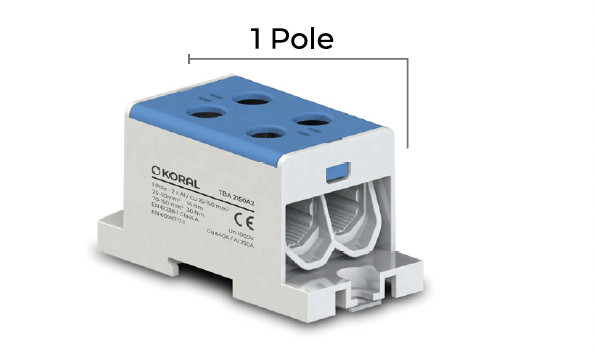 Fővezetéki elosztóblokk, 1P, Cu/Al, 2x25-150 mm2, kék