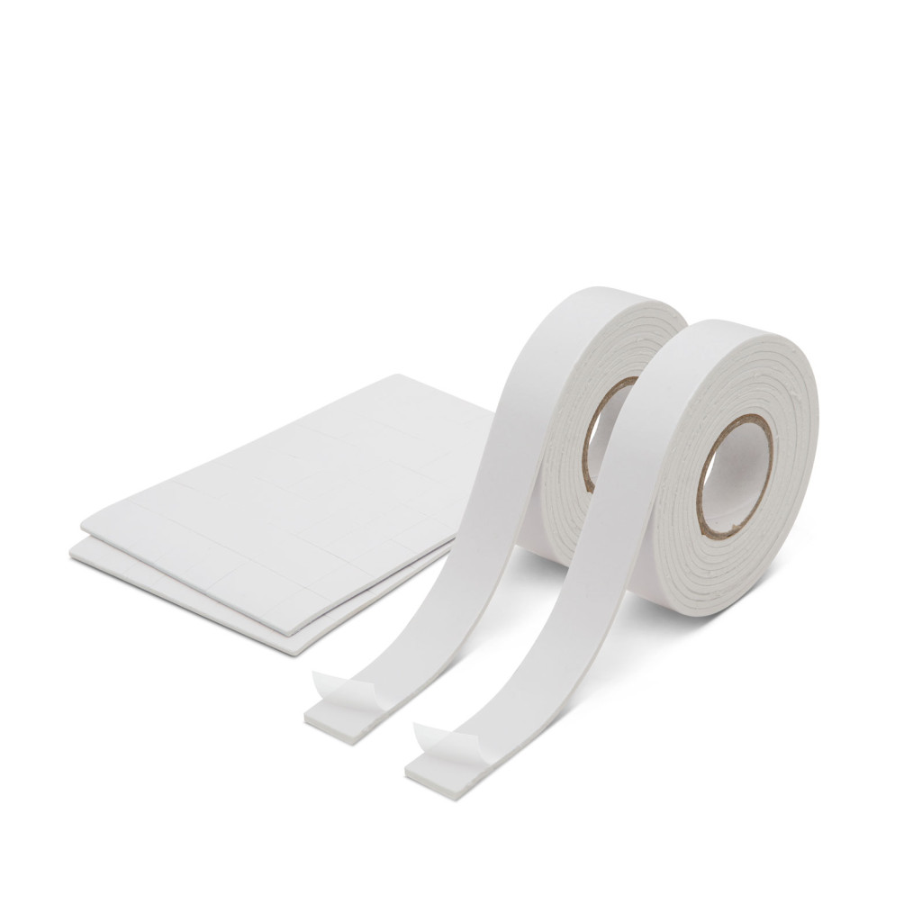Kétoldalas habragasztó szett, sík felületeken történő rögzítéshez vagy könnyű tárgyak felfüggesztéséhez. Nem okoz felületsérülést. Ideális alkalmazása például háztartási ragasztási feladatokra, kézműves műhelyekbe kreatív munkához. A szett tartalmaz két tekercset és 2 db 64 kis négyzetet tartalmazó lapot.