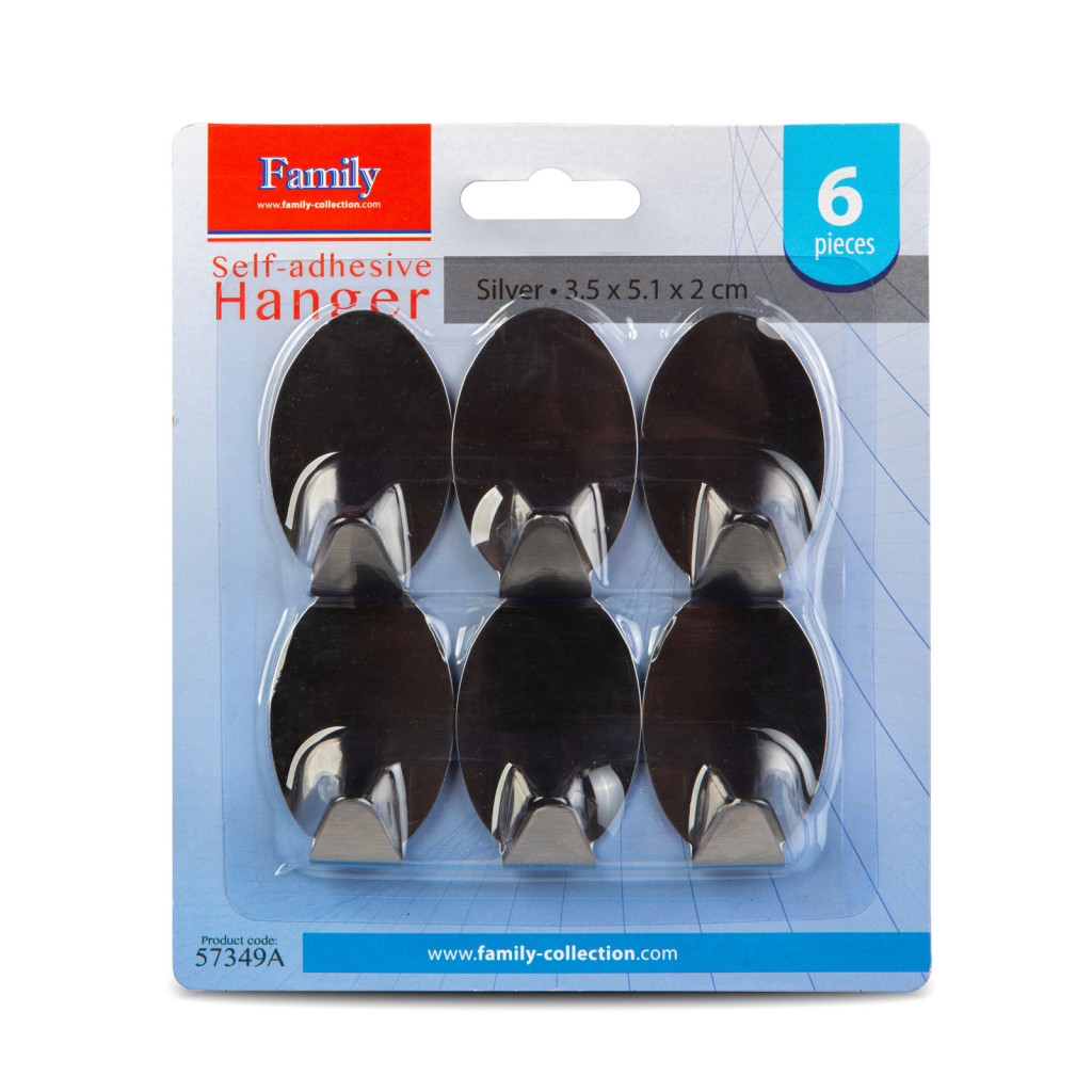 Öntapadós akasztó - rozsdamentes acél - 6 db / csomag