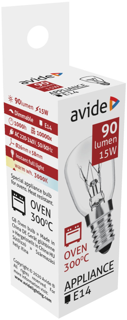 Avide Sütőizzó 300°C izzó 15W E14 WW 3000K