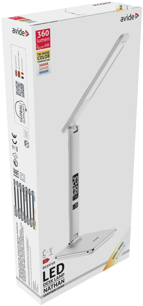 Avide LED Asztali Lámpa Irodai Bőrhatású Naptár Fehér 6W